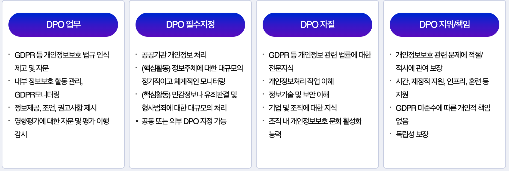 반면에 DPO는 아무나 할수 없죠. 법을 잘 알고 모니터링 해줄수 있는 직원을 아웃소싱해야 합니다.